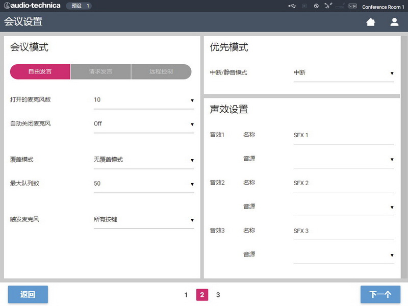 (Web Remote)控制,進行會議控制、會議話筒底座設置網絡設置、音頻設置以及對會議進行實時管理。